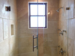 Floor-to-ceiling travertine Spa bathrooms including Euro-glass showers, white quartz vanities with high-efficiency vertical spa showers, heated floors, dual-flush WCs, obscure glass door separators and luxe towel warmers.